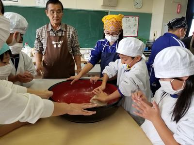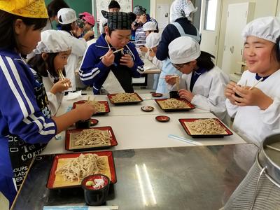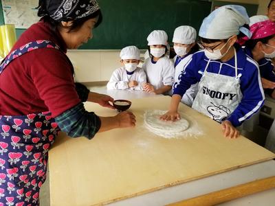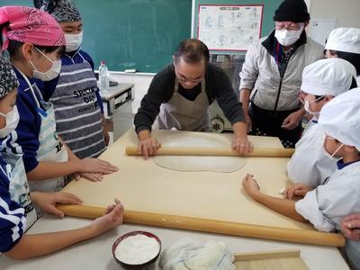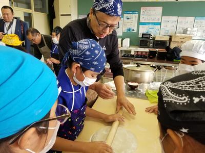 最後のそば打ち体験なので、全校児童が参加しました。