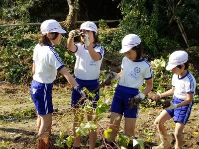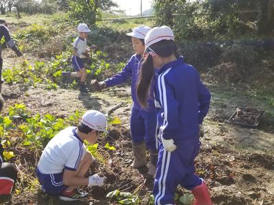 「きっとここにあるよ」 頑張って土の中の芋を探す1年生