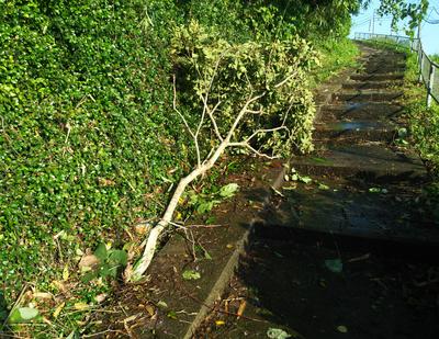 2019年9月10日 08時35分校地内では畑のトマトが倒れこと、雨漏りがひどかったこと、テレビのアンテナが折れたらしくNHKが映らなくなったこと、くらいでしたが、子どもたちの通学路は大きな木が折れたり、枝が飛んできたりと、結構な被害でした。