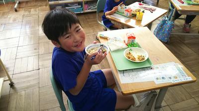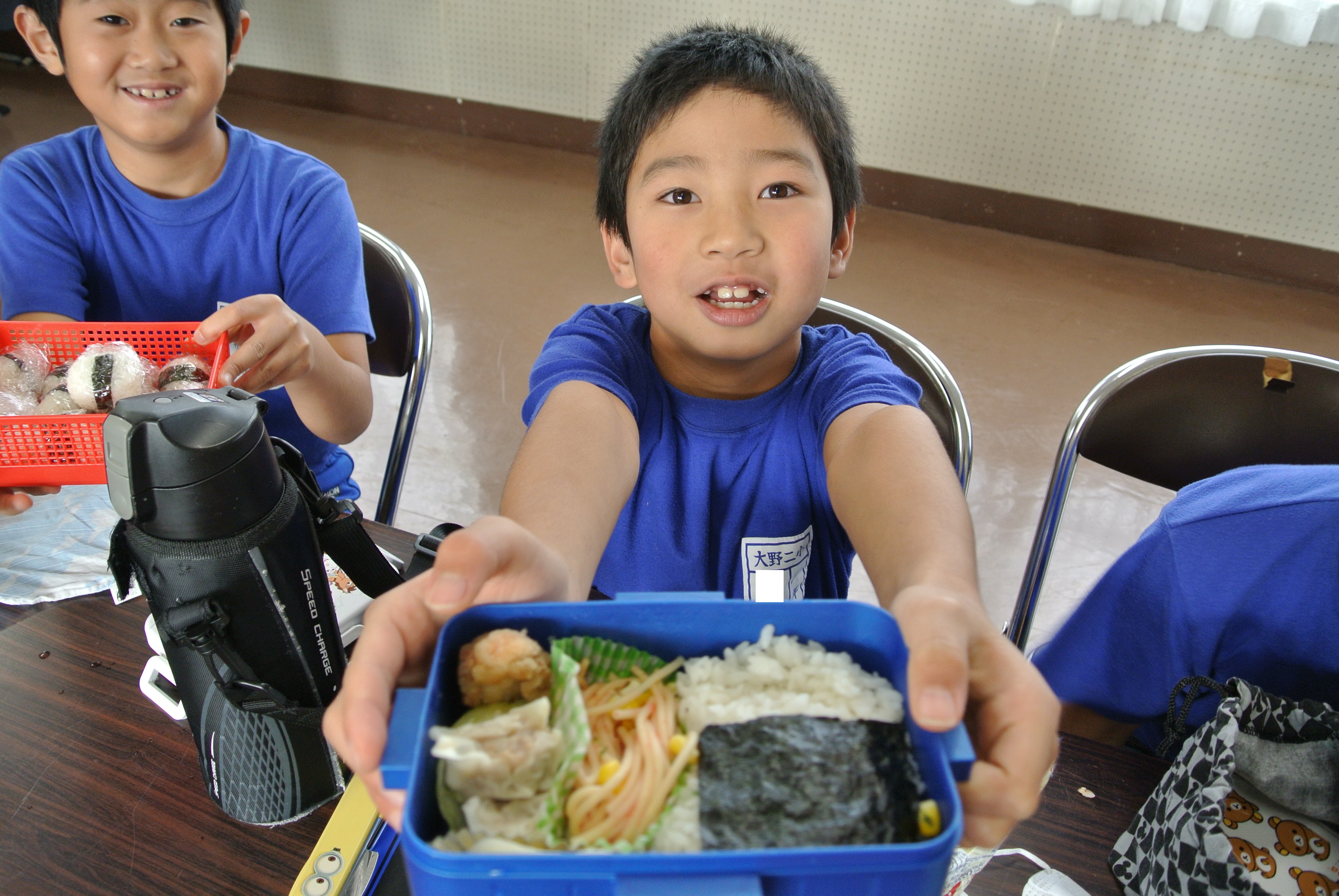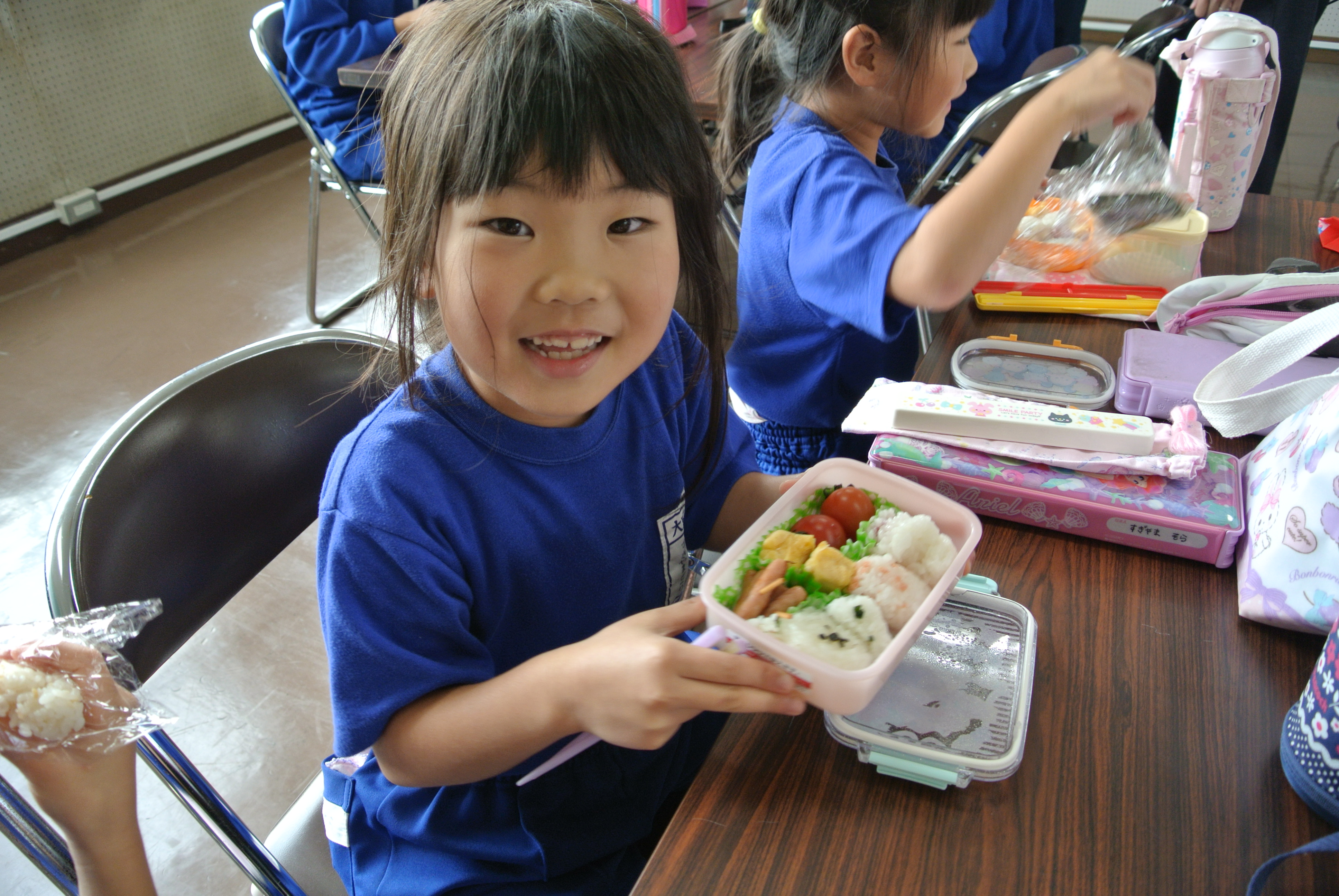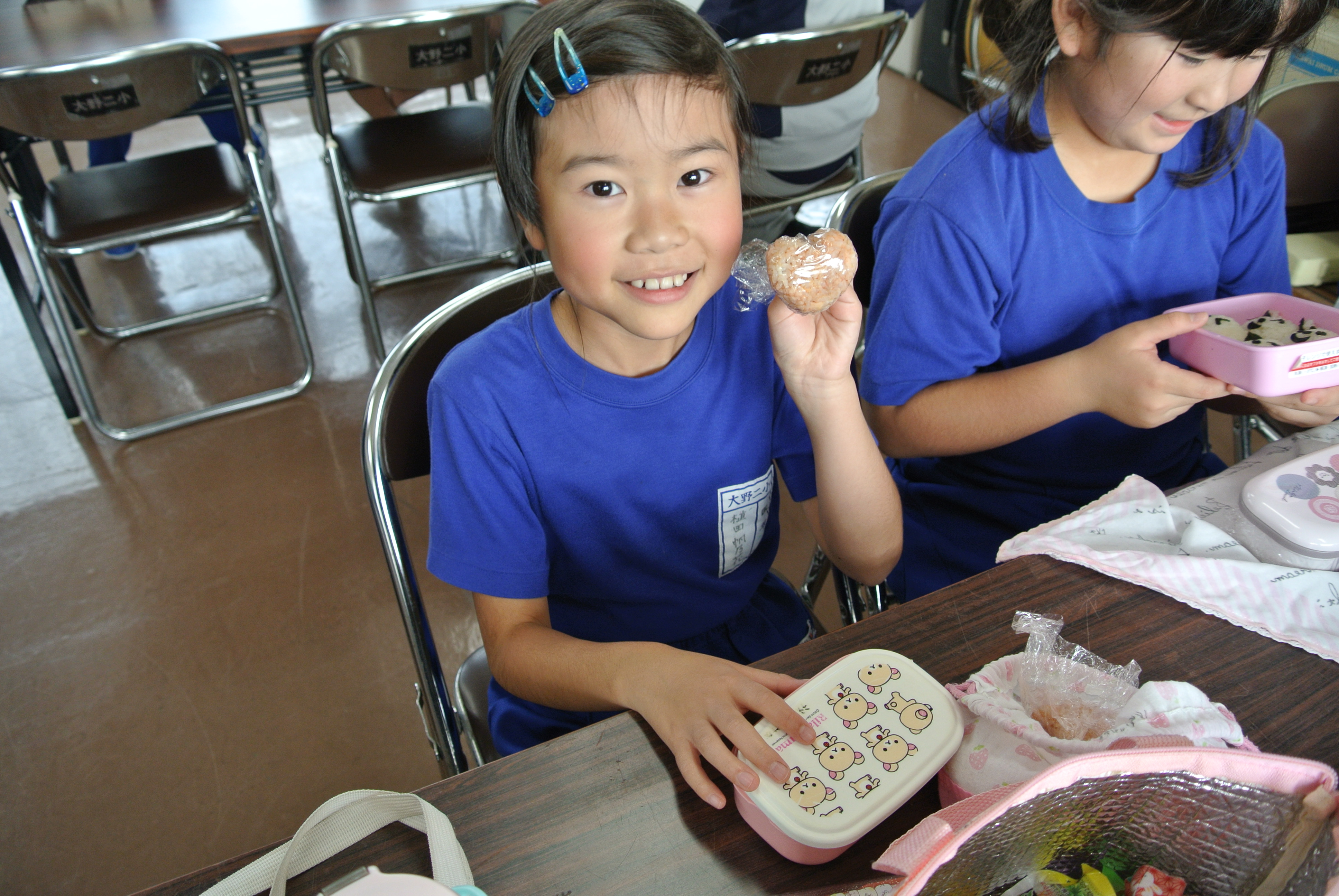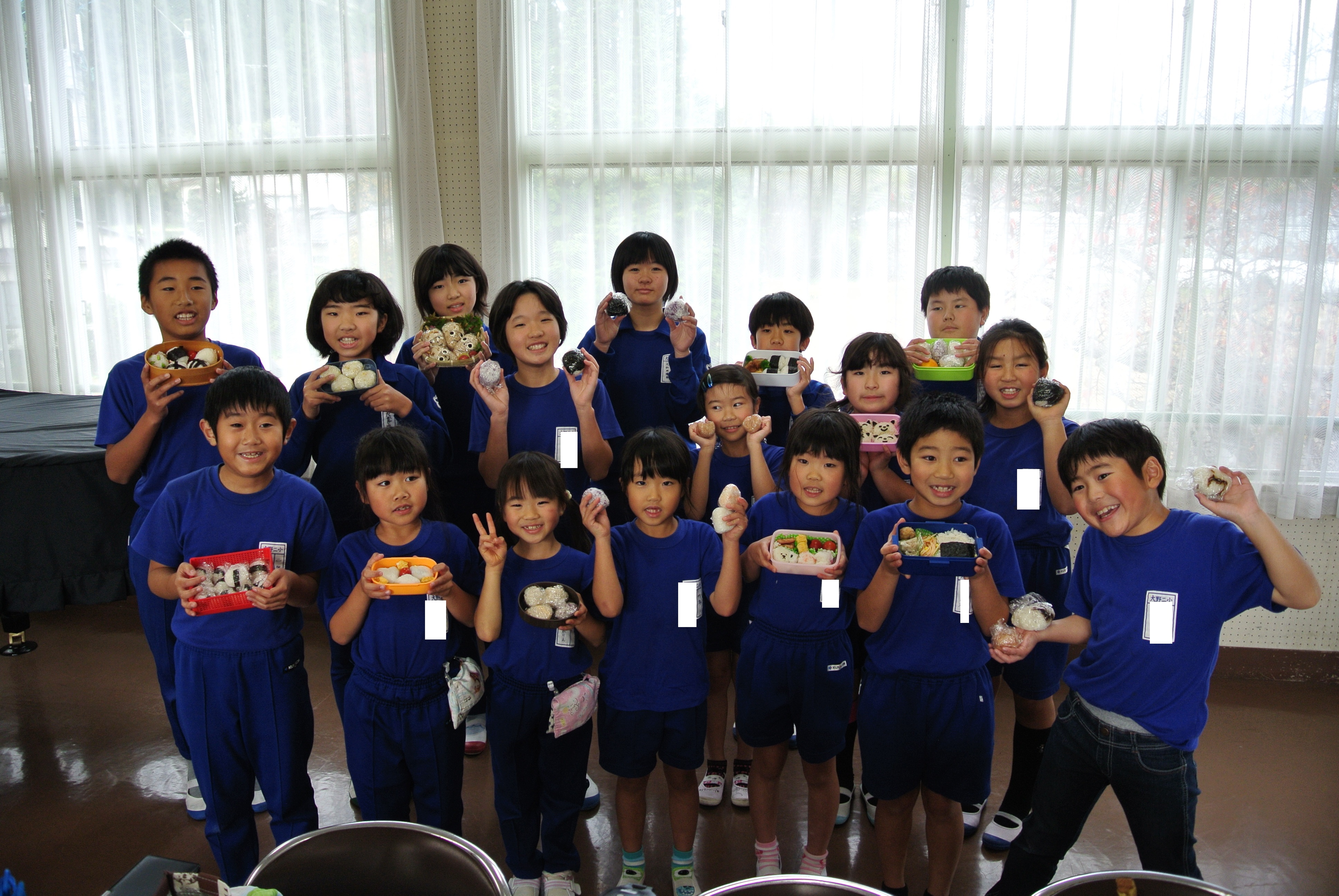 2018年11月12日 13時48分今日は給食がありません。朝から親子でおにぎりを一緒に握って学校に持ってきます。お家の方には、早朝から大変お世話になりました。お陰様で子どもたちは満面の笑みでおにぎりを口にしていました。自分が握った小さなおにぎりを、誇らしげに食べる姿はすばらしいと思います。