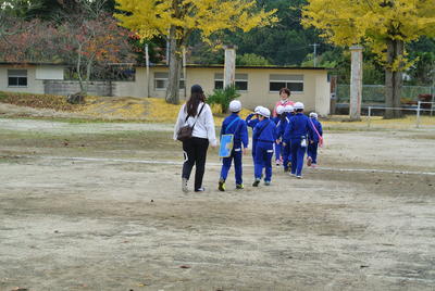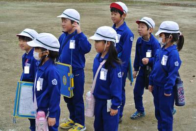 2018年11月13日 09時31分今日は1・2年生が社会科見学学習のため、四倉パーキングエリアに歩いて出発しました。帰りにはミカン狩りも予定されていて、みんなニコニコでした。