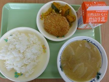 2018年11月13日 15時58分キャベツのメンチカツ、ナメコと大根の味噌汁です。いわきのカボチャを使ったメニューです。まもなく冬至がやってきます。冬場のビタミン確保は昔は大変でしたが、今は一年中野菜が出回っていますから、とてもよい時代になりました。でも、やはり昔からの旬と言われる季節に食べるものには、それなりの理由があるものです。おばあさんが煮てくださるカボチャの煮物をおいしくいただくことが、健康の第一歩だと思いますよ。