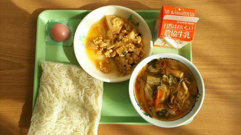 2018年11月14日 11時59分1・2年生が教室移動の時に職員室のわきを通りながら漏らした言葉です。お腹の鳴る音も聞こえたような‥‥。今日もたくさん食べて大きくなってくださいね。五目かけうどんといわきかまぼこの卵とじ、福島県産イチゴゼリーつきです。