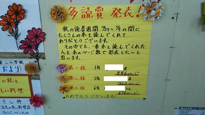 2018年11月14日 12時28分一か月でどのくらい本を読めるかをページ数で競う、多読賞の第1回目の受賞者が決定しました。