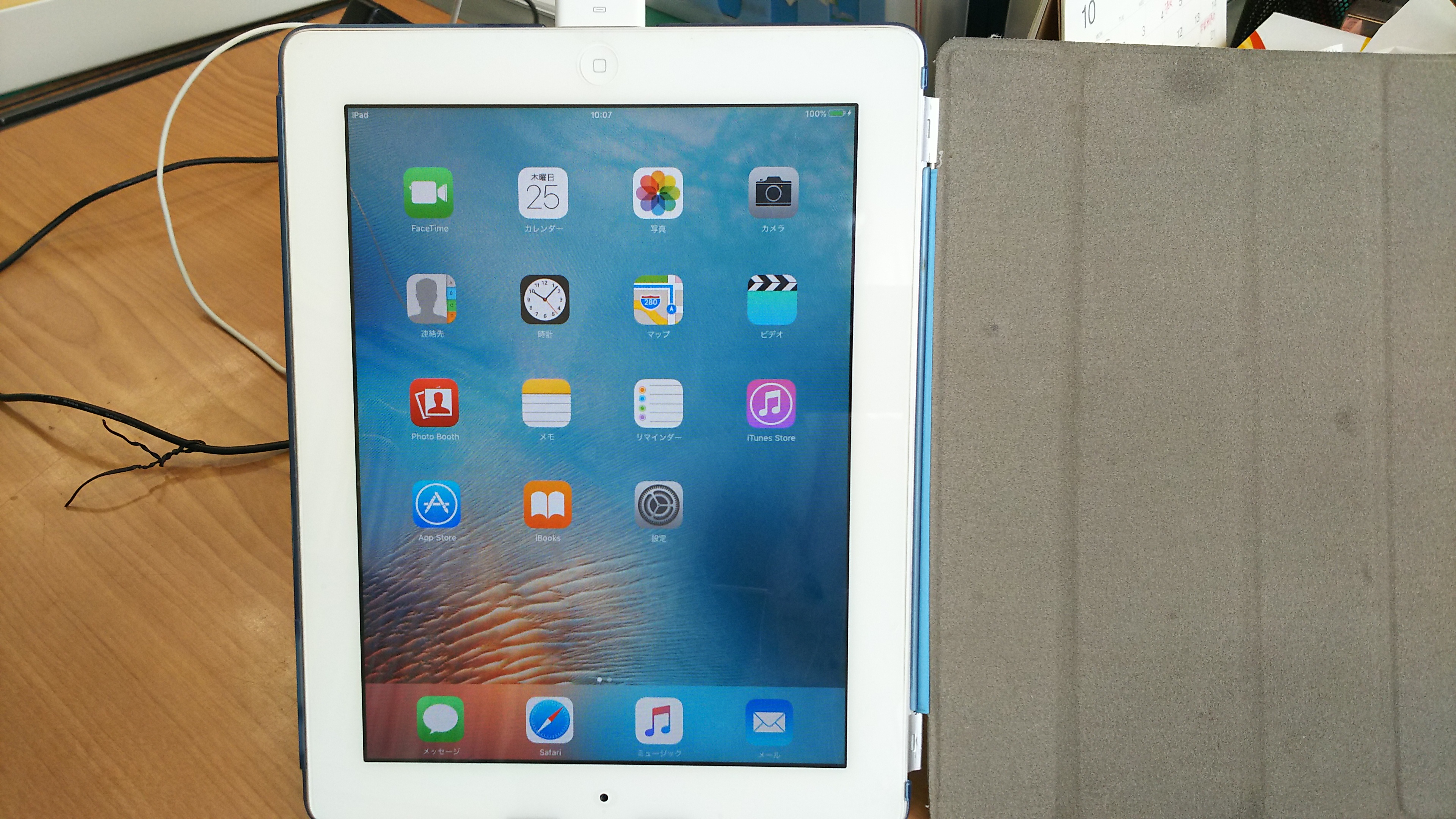 2018年10月25日 10時53分ウインドウズ10が動いているタブレット端末を1・2年生の教室で教材提示や学習発表会練習動画撮影のために使っていましたが、最近調子が悪くて無線で画面をとばせなくなったため、2台目を導入しました。今度はiOSが動いている端末です。学校に無線設備がないために結局画像はとばせないのですが、動画撮影や静止画を確認するために使用します。例えば体育の授業で、鉄棒をやる時の動作チェックなどに使います。そのうち子どもたちに動画を撮らせて、紹介ビデオを作ってもらいたいと思っています。