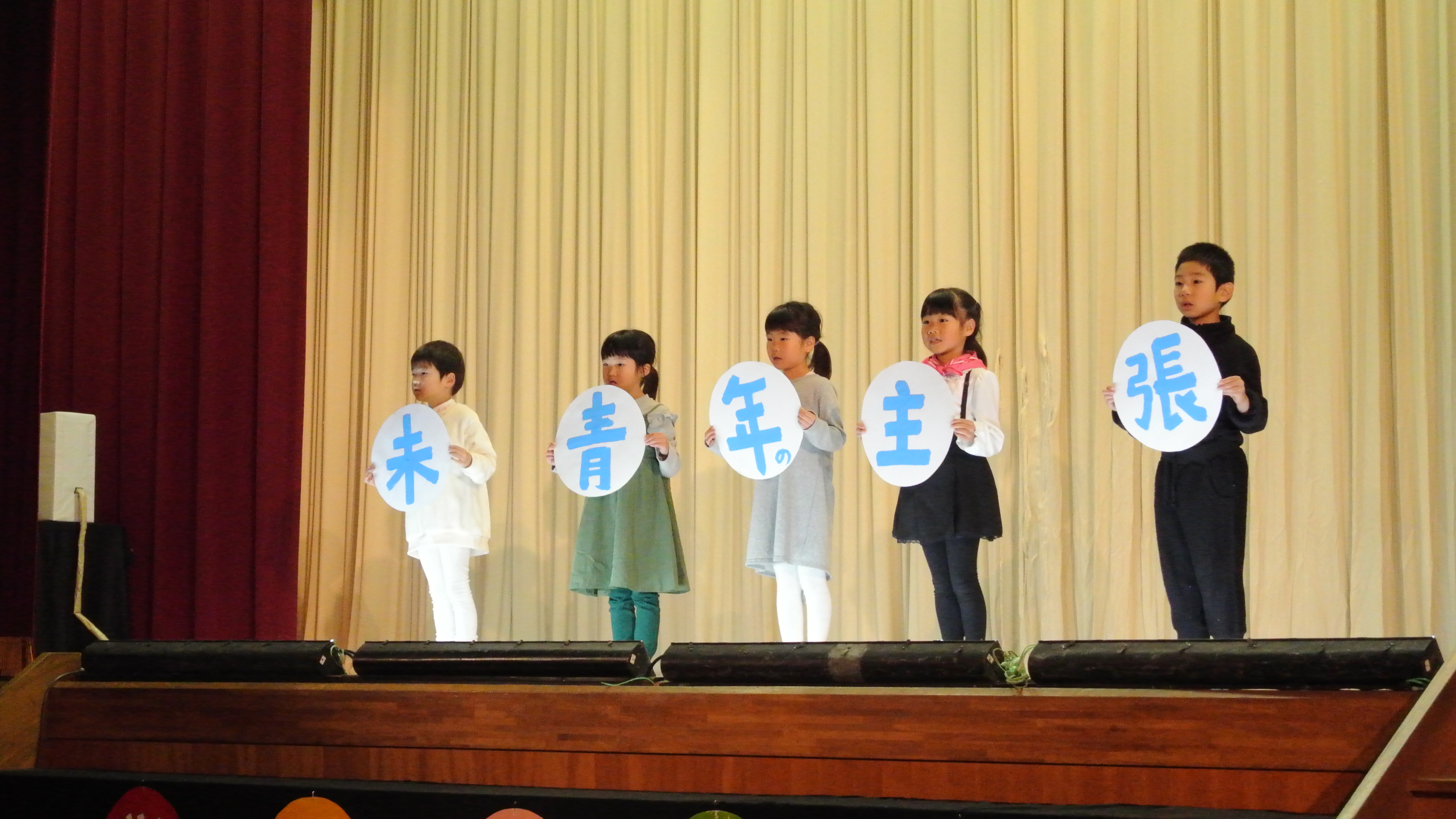 2018年10月21日 13時14分1年生によるかわいらしい開幕の言葉から始まった学習発表会です。