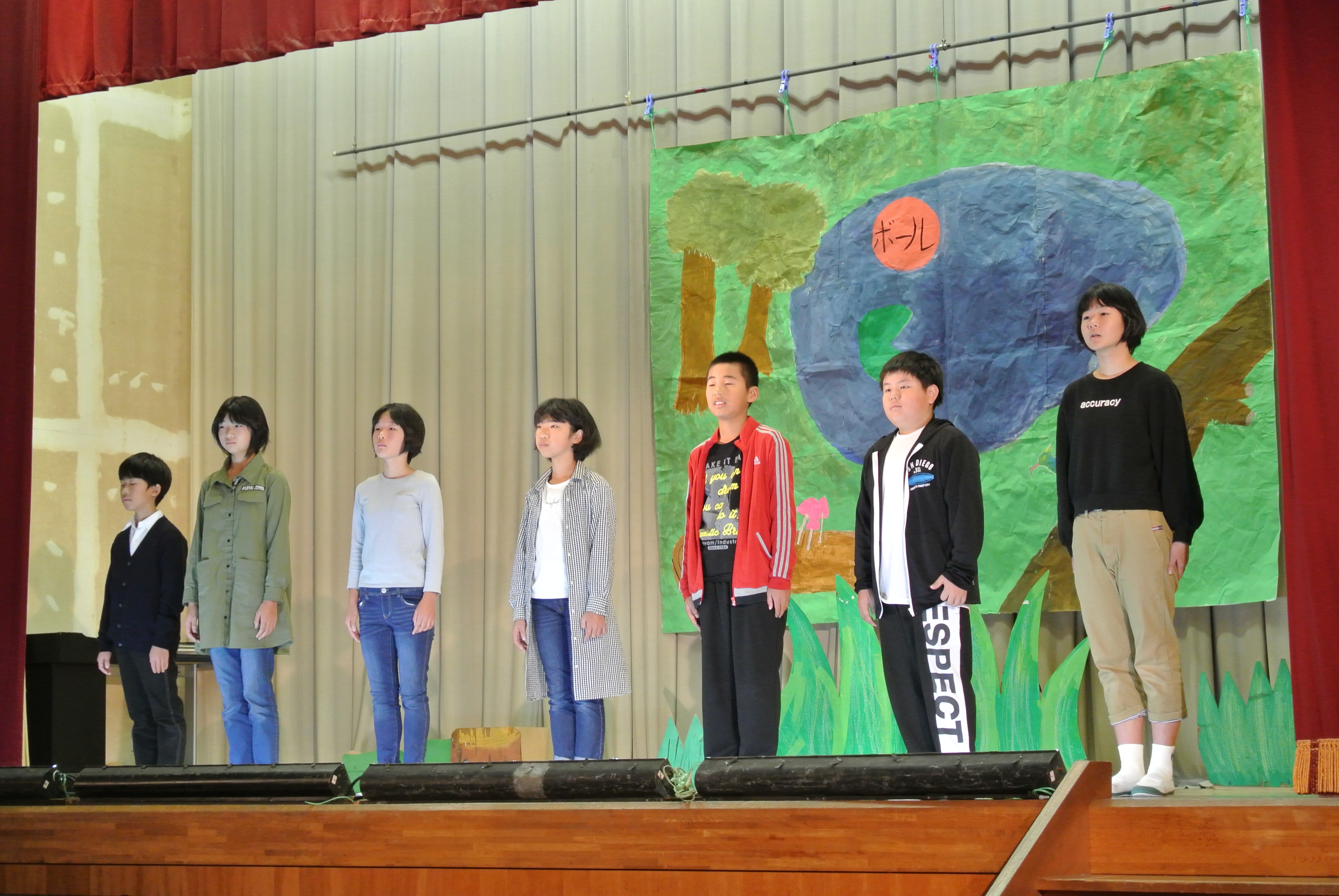 おそろいのTシャツが決まってますね。後半は5・6年生による劇の発表です。