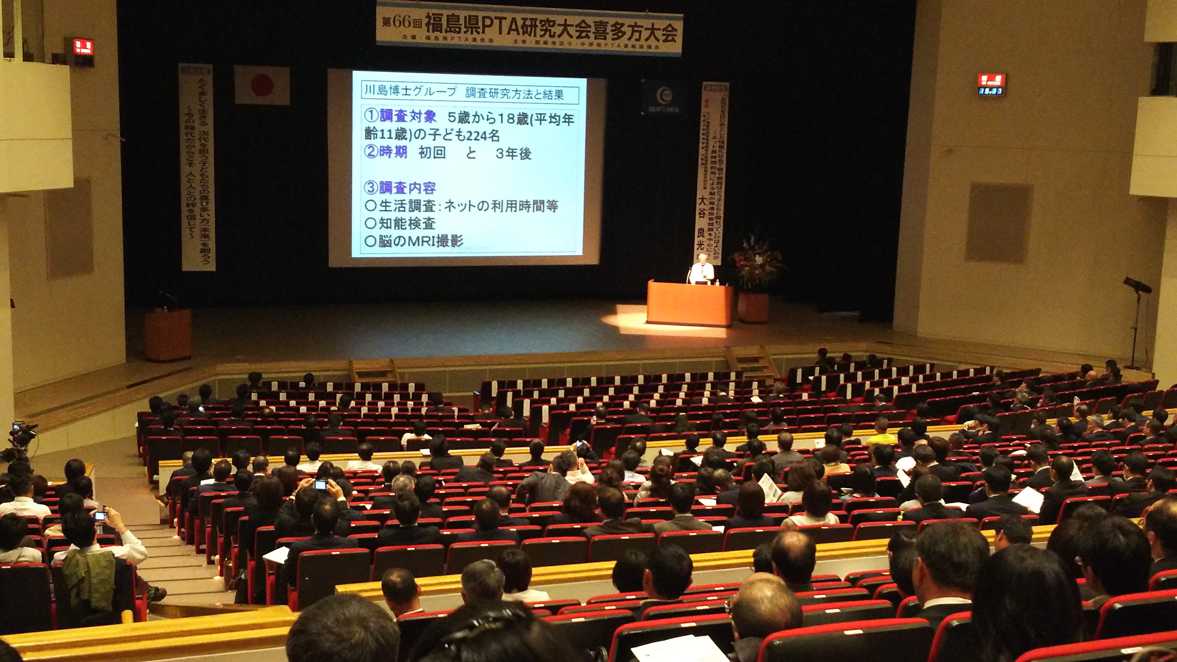 2018年10月14日 15時18分喜多方に県全体のPTAの代表の方が集まり、子どもたちの「喜び多い方」を探りました。午後の講演では、スマホを使えば使うほど、成績が落ちるということを、科学的にお話しくださいました。機会をみて、学校だよりでご紹介します。