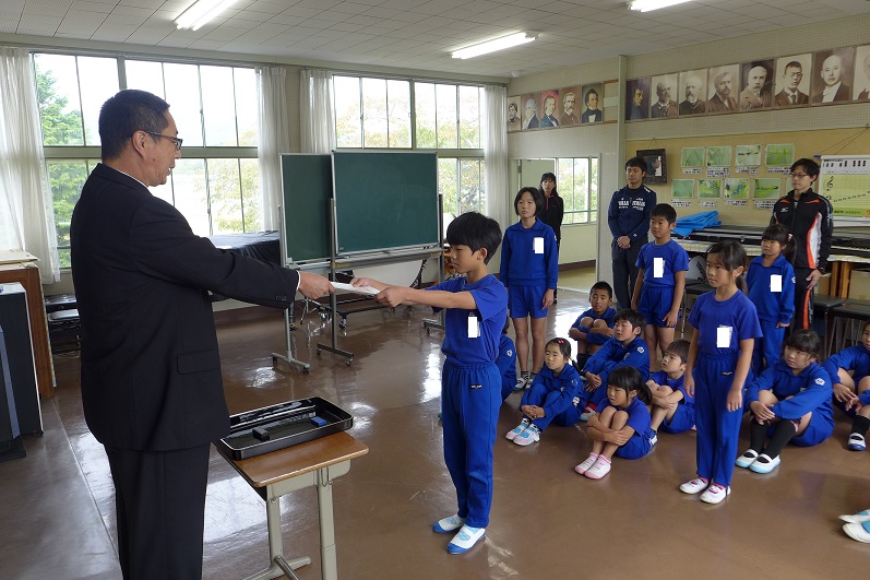 2018年10月15日 10時49分読書感想文コンクールの表彰状が届きましたので、今日の集会で伝達しました。6年生の男子生徒が代表で賞状を伝達されて披露しました。たくさん本を読んで、頭を柔らかーくしましょう。