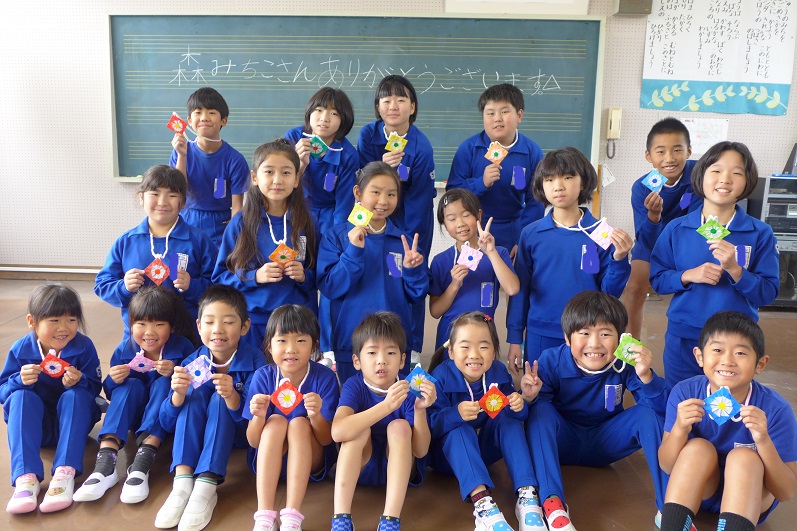 2018年10月15日 10時55分ことあるごとに、子どもたちに心温まるお便りをくださる森さんに感謝の気持ちを表すために、全員で写真を撮りました。この笑顔、森さんに届くといいな。
