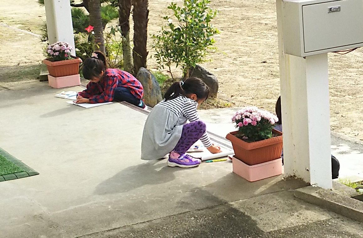 2018年10月16日 08時58分1・2年生は校庭でスケッチです。色鉛筆を使ってがんばります。すてきな作品ができることでしょう。学習発表会の時にご覧ください。