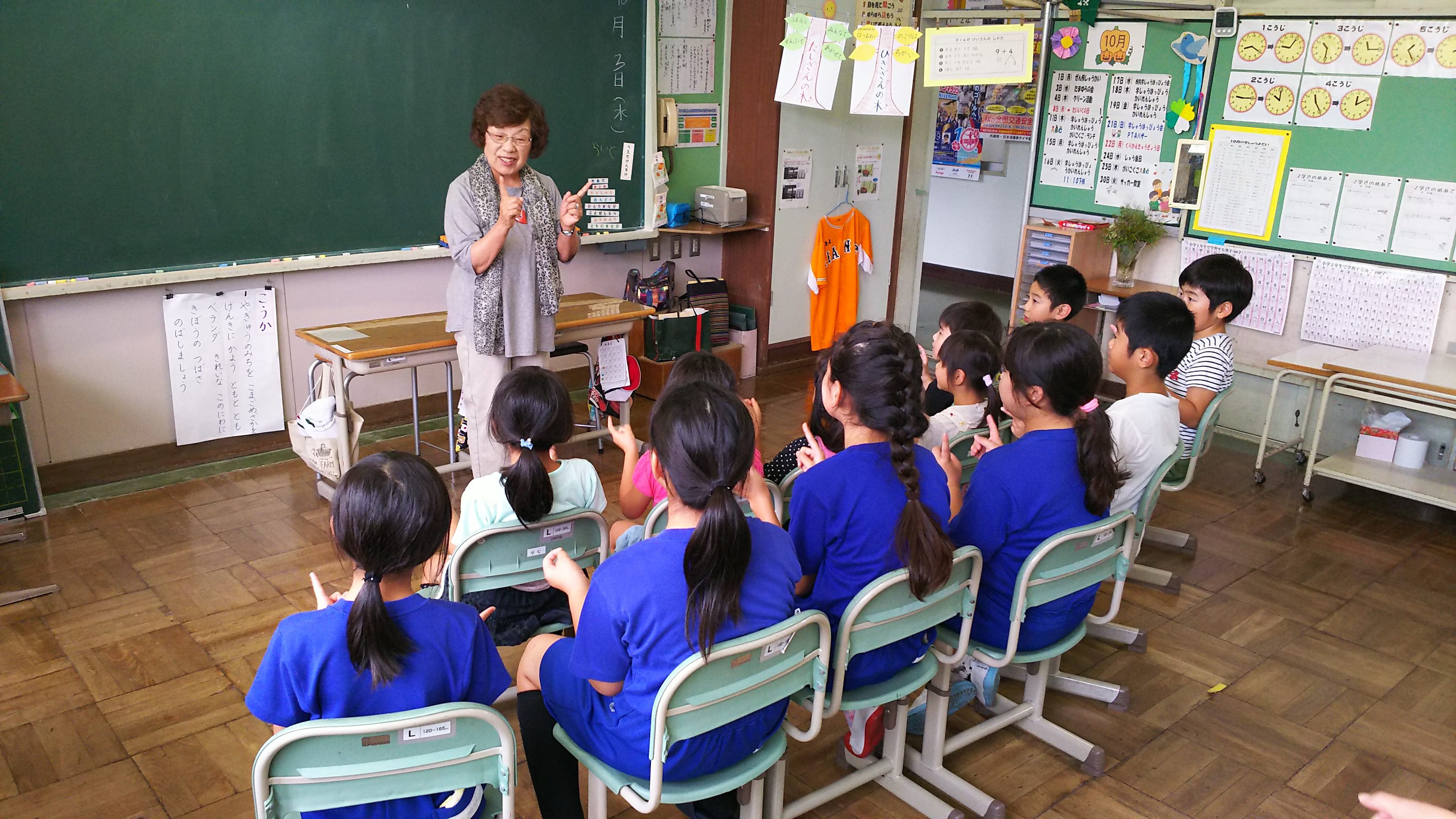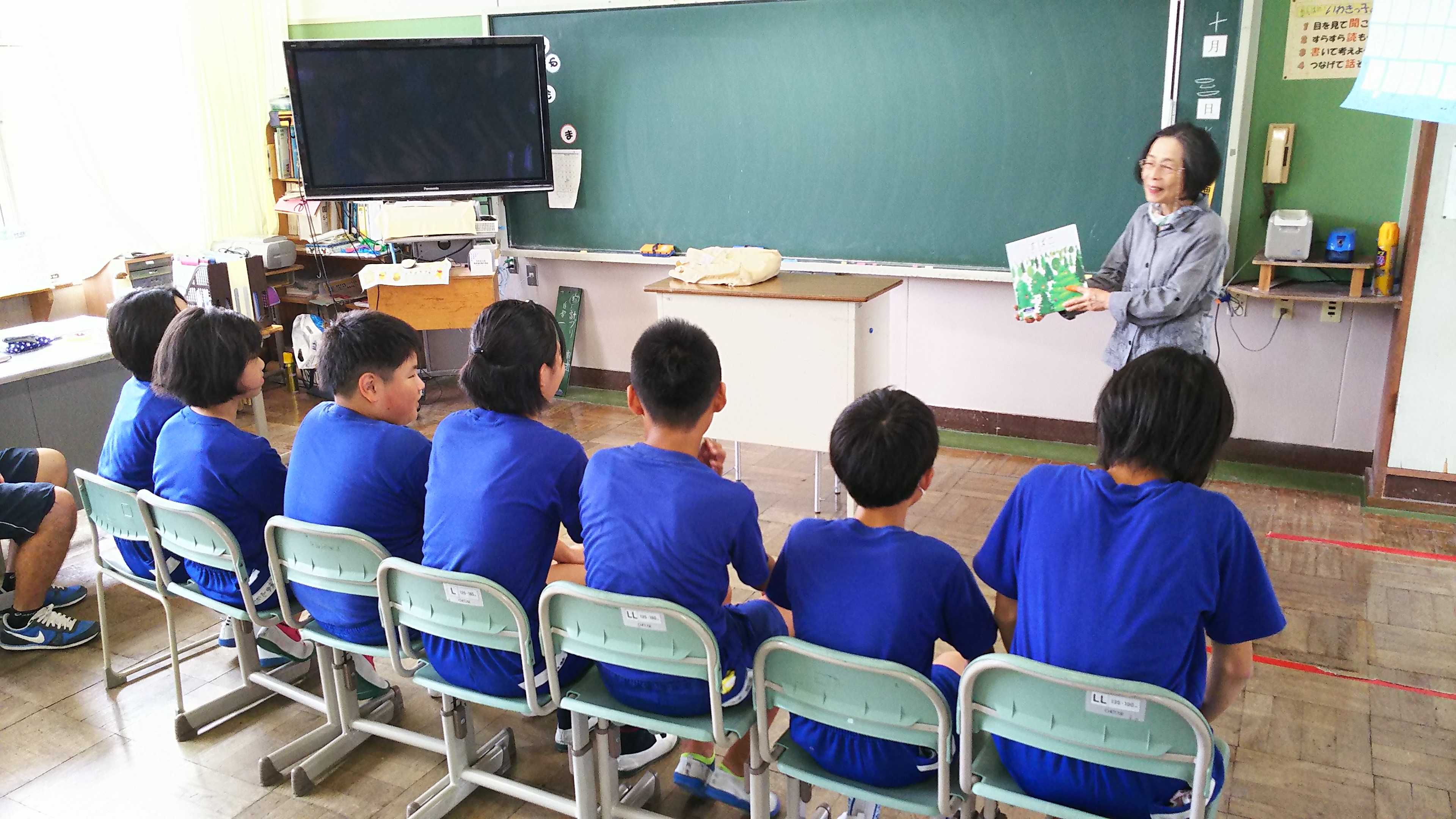 1・2・4年生が一緒にお話を聞きました。