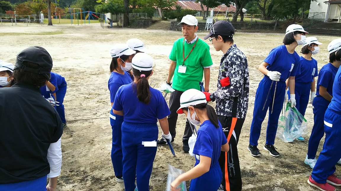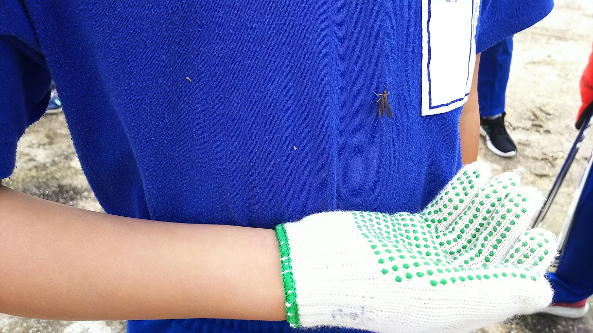 2018年10月4日 09時31分クリーン作戦に出かける前、6年生の男の子に虫がとまりました。周りからは、さすがに持ってる男は違うね、と言う声が聞こえてきました。