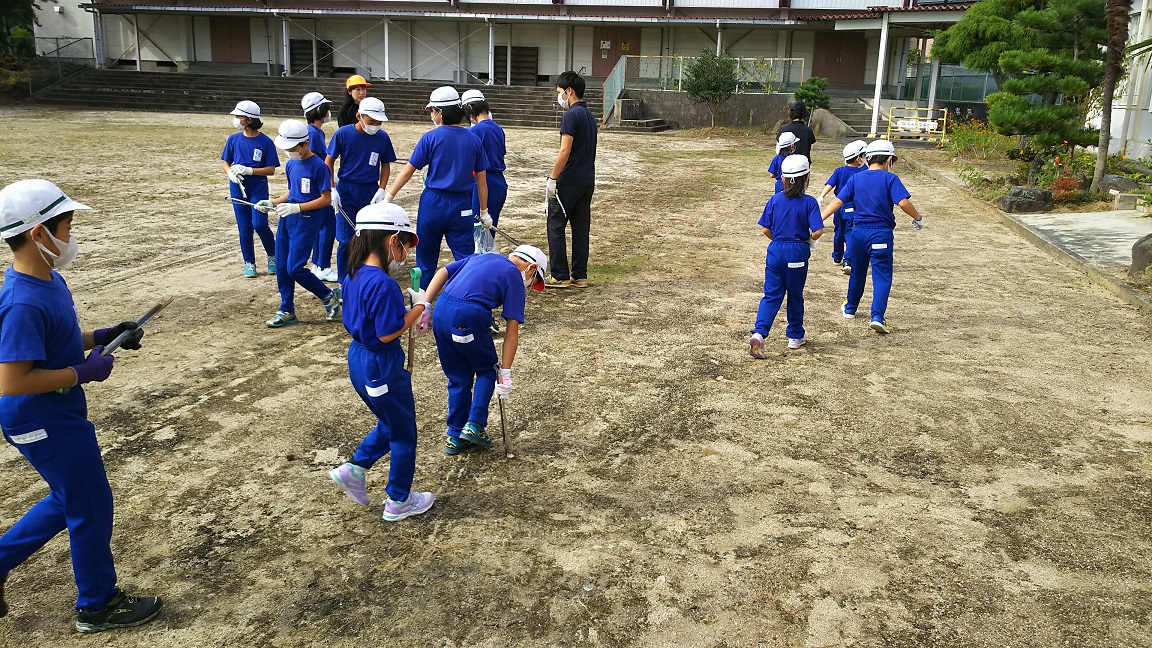 2018年10月4日 09時26分今日は全校児童によるクリーン作戦です。普段お世話になっている学校周辺にゴミ拾いに出かけます。中には「マイ火ばさみ」を持参して、しかも名前まで書いている人もいて、気合いの入り方は尋常ではありません。何をするのも楽しい1年生がいると、学校全体のやる気がアップしてうれしい限りです。