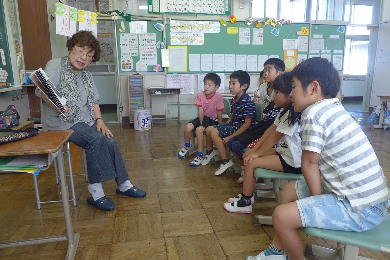 2018年9月19日 13時45分今日は月に一度のたまゆらの会の日。子どもたちはとても楽しみに待っていました。今日は紙芝居もあって、子どもたちは大興奮!もっともっとと、せがまれたたまゆらの会のみなさんは、うれしい悲鳴を上げていらっしゃいました。