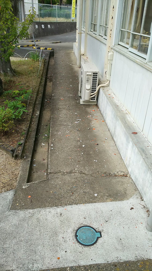 2018年7月4日 08時28分おはようございます。昨日までとは一転して、少し過ごしやすい今日の広畑です。これからの雨が校舎に吹き込んできたり、伝って雨漏りをしたりするのが心配です。校舎の縁のさびの浮いているところを、手の届くところだけは落としたのですが、届かないところが多いです。雨も慈雨程度であってほしいと願っています。