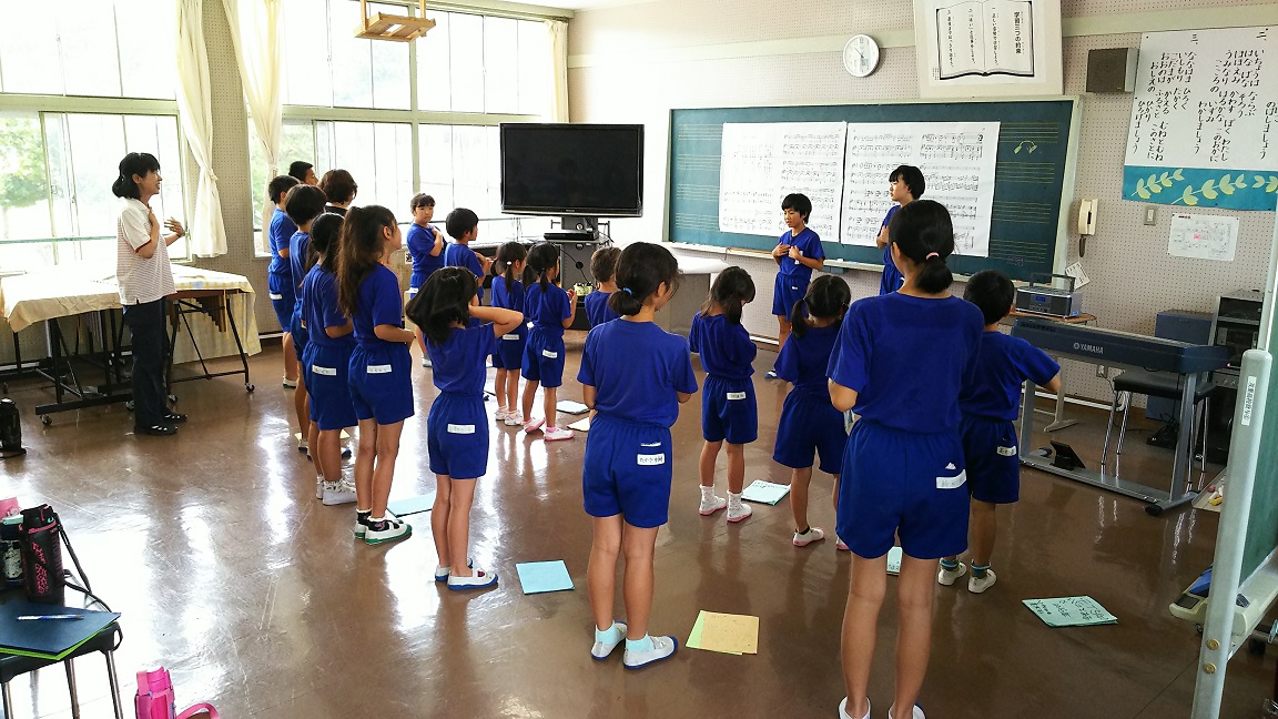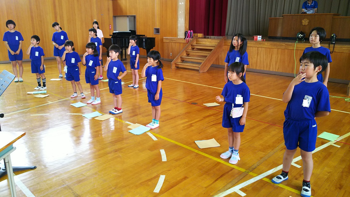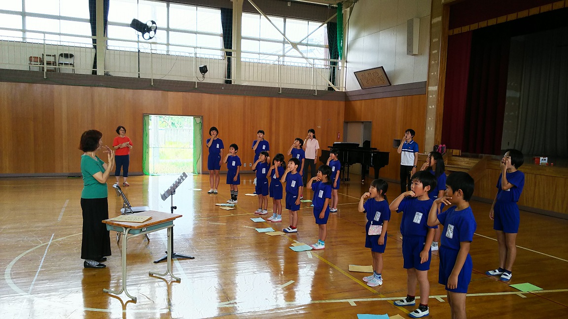 2018年7月5日 10時35分合唱練習です。準備体操や発声練習等に時間をかけます。とても大切なことです。みんな一生懸命です。