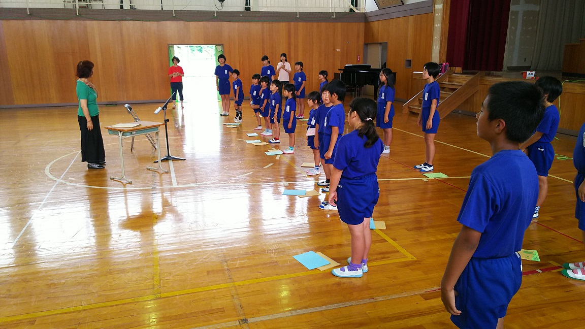 2018年7月4日 09時36分講師の先生をお招きしての合唱指導が今日から始まりました。まずは基本姿勢と発声練習からです。1年生は目を白黒させながら、指導を聞いていました。さて、どんな歌に仕上がるかなぁ。