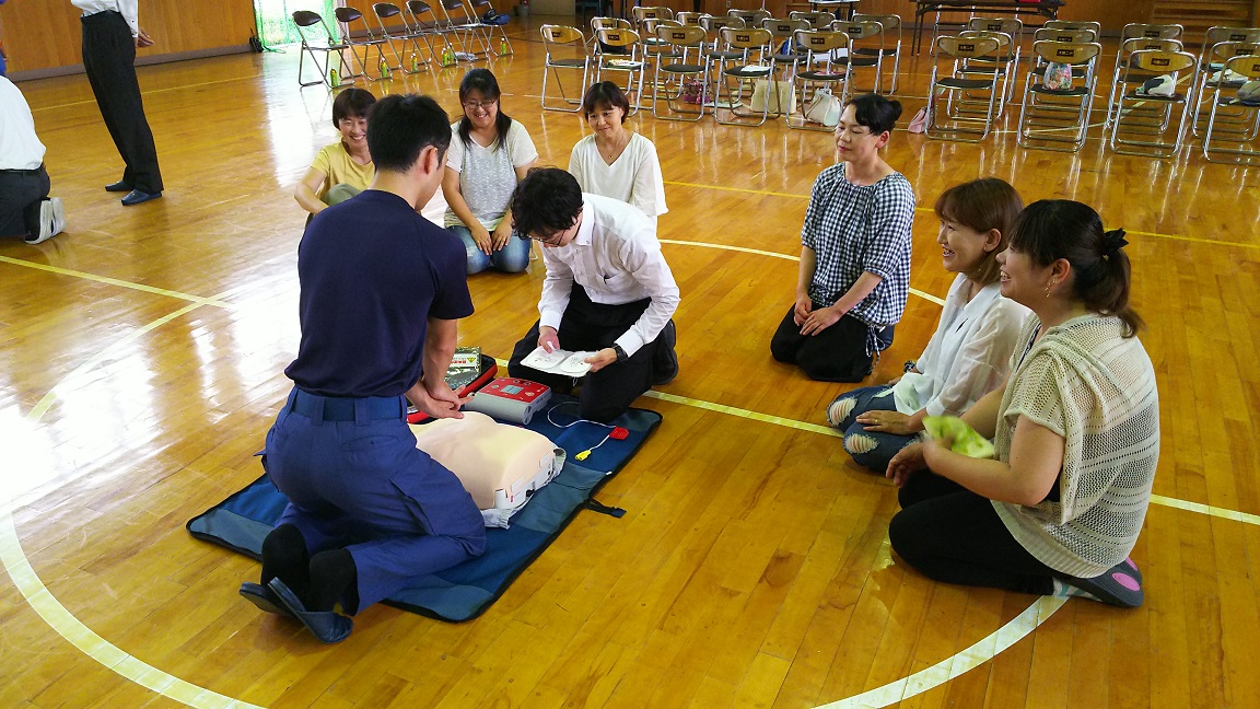 2018年7月5日 17時01分授業参観のあとはAED講習会開催。動画にもあげましたが、保護者と教員全員でAEDの使い方を中心とした心肺蘇生法を学びました。皆さん、小学生に戻って、真剣にお勉強していたことを、子どもたちに報告したいと思います。