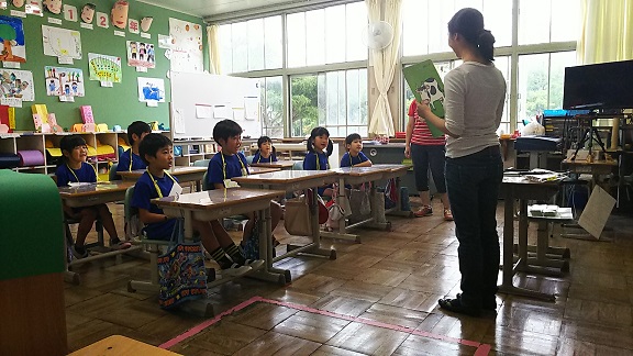 今日はALTの先生がいらっしゃって、楽しい英語活動です。1・2年生は「Touch the Collar」という教室の中にある色を見つけるゲームをして楽しんでいました。動画でご紹介できないのが残念!