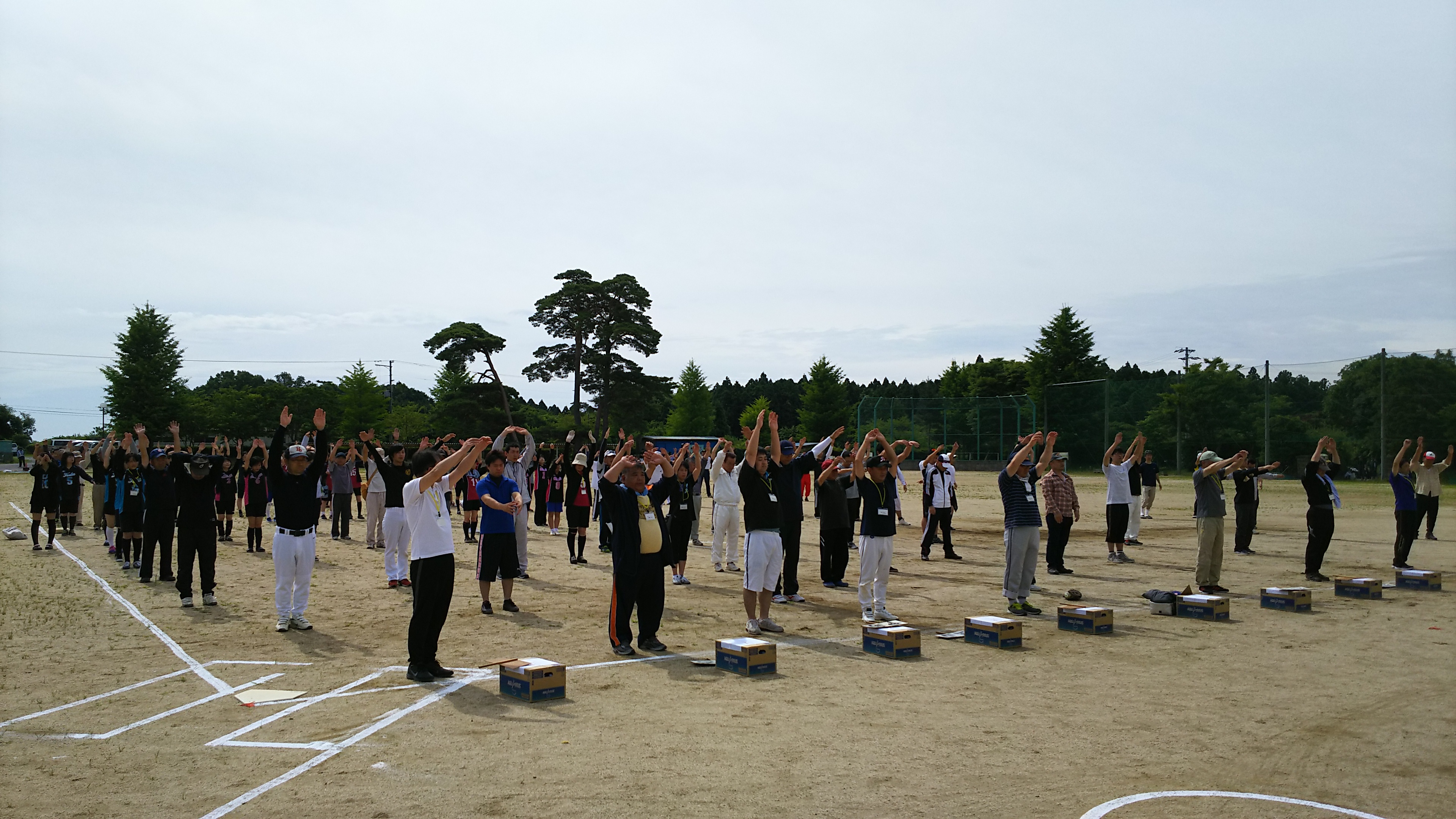 2018年6月24日 09時22分今日は大野地区の球技大会。いつもは子どもたちを応援しているお父さん、お母さん方が、ソフトボールとバレーボールの親善試合です。お母さん方はどこから見ても中学生?のようなはつらつとしたプレーを展開中。お父さんたちは、試合後の○○が気になる?