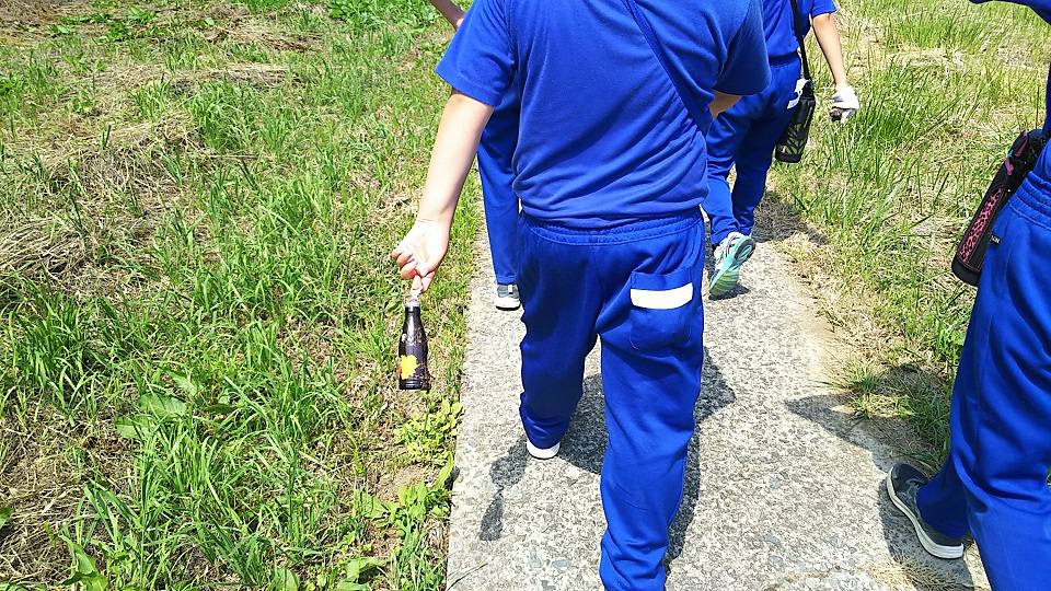 2018年6月25日 10時08分苗を植えた帰り道、6年生男子がなにやらもぞもぞとしています。どうしたのと聞くと、道ばたの落ち葉の下に隠れていたゴミを拾っていたのでした。こういうことが自然にできるんですよねぇ、本校の6年生は。すばらしいことです。ありがとう。