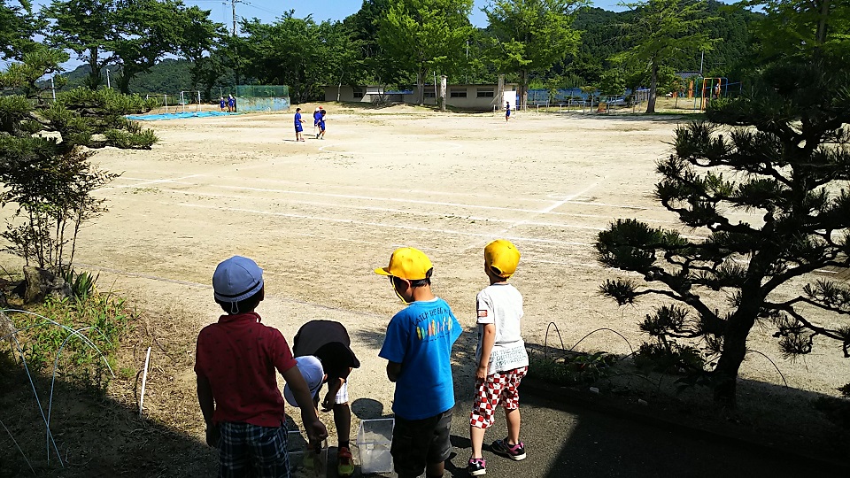 今日は、道路沿いの花植を全員で行い、プールでは学年ごとに違う泳ぎを学び、そして遊びの場面では、大きくなりたいという夢を持ちました。いい一日でしたね。いい夢見てね。