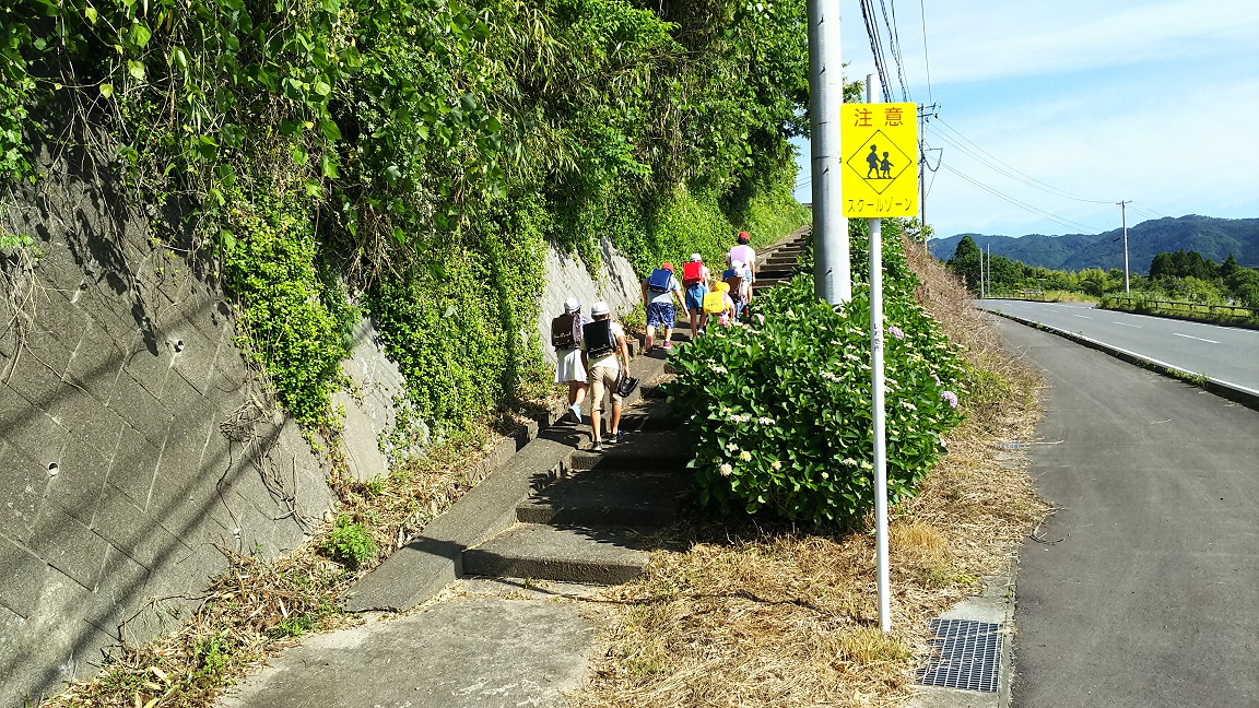 2018年6月14日 08時00分今日から一部方面は集団登校を再開しました。幹線道路沿いですから目も届きやすいと思います。見守りをよろしくお願いします。