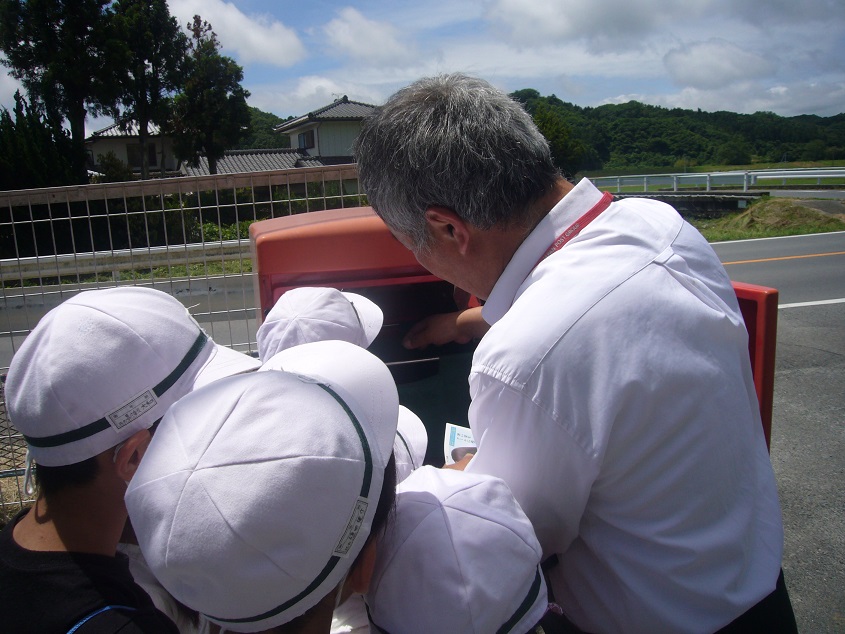 郵便局で詳しくお仕事を聞いた子どもたちは目を輝かせていました。特に、ポストを開ける時は、かなりのどきどき感があったようですよ。この中から、将来地元で郵便業務に就く子どもたちが出るかもしれませんね。