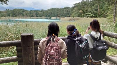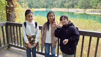 2020年10月1日 12時37分今日の裏磐梯は雨の予報だったのですが、うちの女子ーずのパワーは雨雲を吹き飛ばしてしまいました。過ごしやすい気温で、元気よく散策する、女子ーずです。