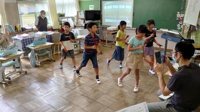 2020年9月23日 14時55分5校時目の3・4年生は体育館で音楽を聴いていました。そこからイメージをふくらませての創作ダンスのようです。自分で考えたダンスをタブレットで撮影してもらって確かめ、次の時間につなげるらしいです。「らしい」というのは、途中過程を見ないで、ダンスそのものを撮影してDVDで配信したいと思っているからです。完成したダンスをお楽しみに!