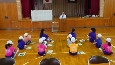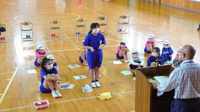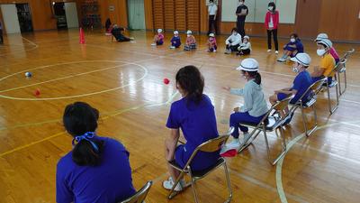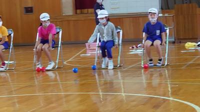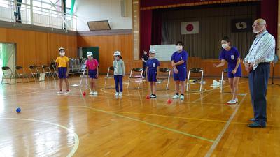 2020年9月24日 11時59分今日は人権教室でした。1年から6年までの全校児童で行う人権教室のため、人権擁護委員の方にはいつも大変お世話になっています。今年度は、パラリンピックで正式種目になったボッチャに取り組んでみました。普通に立ってボールを投げたときと、椅子に座って下半身が効かないようにして投げた場合の違いに気づき、健常者と支援を必要とする人との感じ方の違いに気づくためのものです。子どもたちは一生懸命に取り組み、感想を発表していました。
