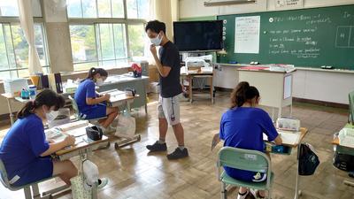 2020年9月18日 12時16分蒸し暑い日になりました。晴れたり曇ったりですっきりしません。それでも、明日の授業参観の準備をしたり、まとめをしたり、昆虫を探したり、月の満ち欠けを学んだり。今日も頑張る子どもたちです。