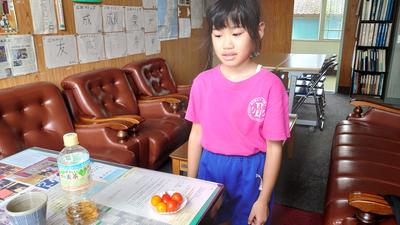 2020年9月2日 11時11分昨日の生活科の時間に、1・2年生が校地内の生き物調べをしていました。一段落した後で、ダッシュ農園の作物を収穫して、校長室に届けてくれました。ひときわ甘く、おいしく感じました。本当にありがとうございます。