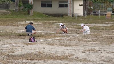 2020年9月2日 14時38分6校時、6年生が校庭で草むしりです。お父さんお母さんたちがきれいにしてくださった校庭を維持するために頑張ってくれています。今の時期の草はなかなか抜けなくて大変です。教頭先生が飲み物を式台のところにおいてくれました。身体に気をつけながら頑張ってください。
