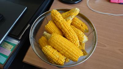 2020年9月4日 14時01分広畑ダッシュ農園で育てたトウモロコシを収穫しました。収穫時期は少し遅いのは、7月までの長雨のために生育が遅れてしまったためです。その分、とても甘く、濃い味のトウモロコシになりました。用務員さんに感謝しつつ、じっくり味わって食べてほしいと思います。