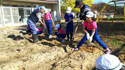 2019年11月6日 10時04分第四幼稚園に一時避難で赤井の保育所さんが来ることになりました。3~5歳児合計77名だそうです。現在保育士さんたちがやってきて、園の校舎内を片付けたり掃除したりしています。詳しい移転時期については明日の午後に園長さんが来てお話しするそうです。台風や大雨で被害を受けているので、助け合いの精神で頑張りましょう。というわけで、園庭を園児たちの遊び場とするために、農園を縮小しています。今日は別記事でご紹介するサツマイモ掘りをしました。大根と落花生を来月に収穫したら、農園は校庭の東側、桜の木の下の日当たりの悪いところに移転します。