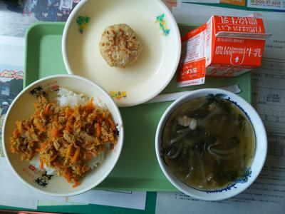 2019年9月17日 12時11分今日は草野小学校さんのリクエスト献立です。ツナご飯、春雨スープ、コーヒー牛乳は定番ですが、炒り豆腐包み焼きというのが、なかなかのチョイスですね。相当の食通さんが多いのでしょうか?