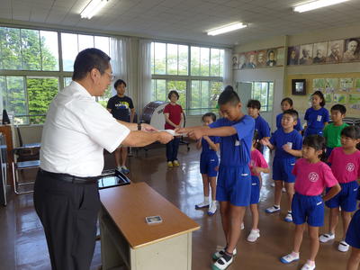 2019年9月18日 08時55分県総体、スポーツ少年団ラグビー高学年で優勝したお友だちの表彰披露を行いました。学校としても大変うれしく思います。多くの子どもたちが自分のすすむ道を見つけてほしいと思います。
