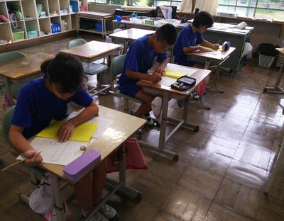 2019年9月18日 13時02分水曜日は簡単清掃の後で、学年ごとに計画的に過ごす広畑タイム。6年生は明後日に迫ってきた修学旅行の事前準備に忙しいので、5年生が3年生の教室にお邪魔して過ごしていました。