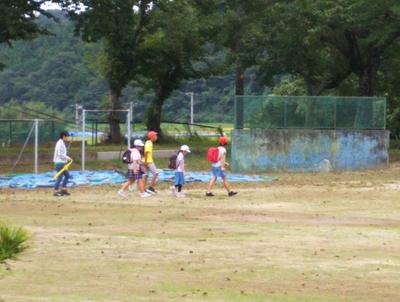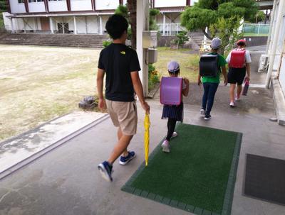 2019年9月18日 14時40分今日は事情があって、担任の先生が途中までついて帰ります。雨が落ちてきましたが、子どもたちは気にならないようです。風邪引かないようにしてくださいね。