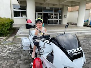 小学校の防犯教室で来てくださったパトカーや白バイに乗せてもらったり、