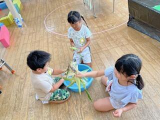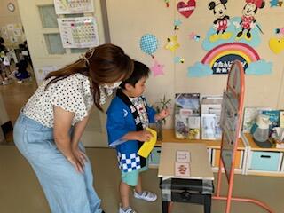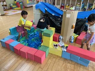 今日は登園するとおうちごっこのお風呂作りをしていました!