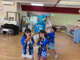 高坂幼稚園も夏祭りを控えているようで、おみこしや盆踊りに混ぜてもらいました♪