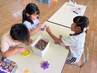 食後はみんなで懐かしい遊び『アイロンビーズ』をしました!