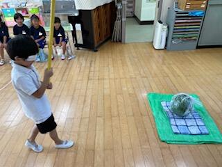 惜しくも当たらなかったり、何度もヒットして叩いたりして亀裂が入りましたが割れませんでした。