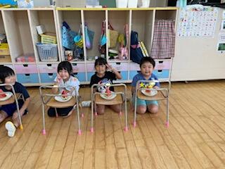 お部屋で『いすとりゲーム』『フルーツバスケット』『ハンカチ落とし』も楽しみました
