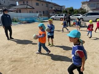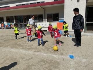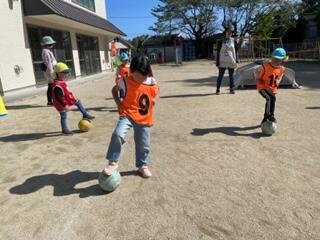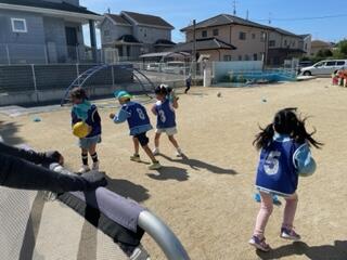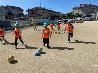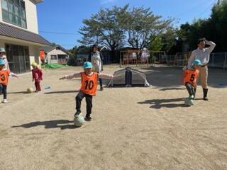 強風の中でしたが、子どもたちは元気に体を動かしてボールを蹴ったり、ゴールに入れたりと楽しんでいました♪