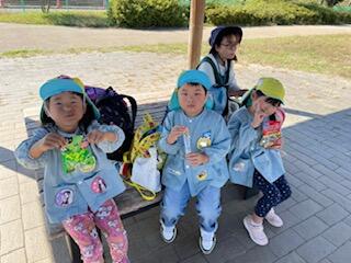 半年間一緒に過ごした高坂幼稚園のすみれ組さんと一緒にお別れの言葉や修了の歌も大きな声ででき、ゆり組さん、もも組さん親子に見送られ高坂幼稚園をあとにしました。