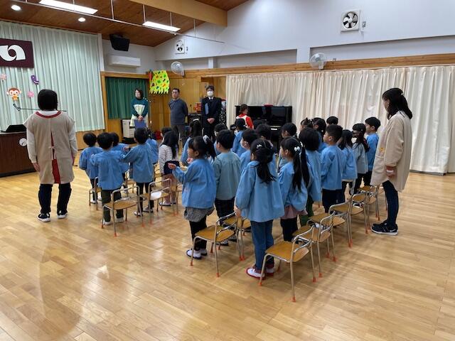 そのあと、保育室の改修工事が終了した宮幼稚園に移動し「みやようちえん ありがとうの会」を行いました。